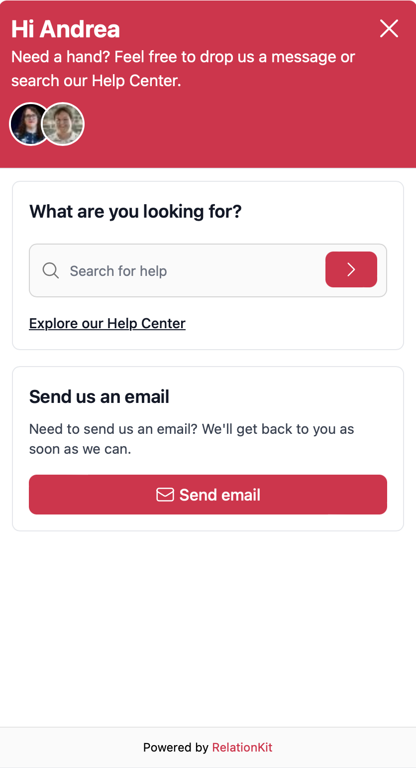 Give your customers the help they need right where they need it. Embed help articles right into your app with the RelationKit widget. It's easy to install and customize to match your brand.